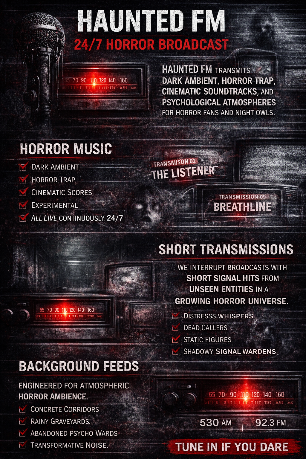 A horror radio experience blending live transmission, short films, and signal disruptions.